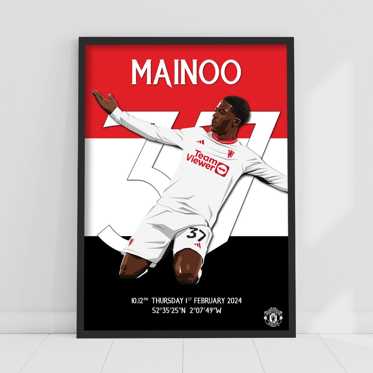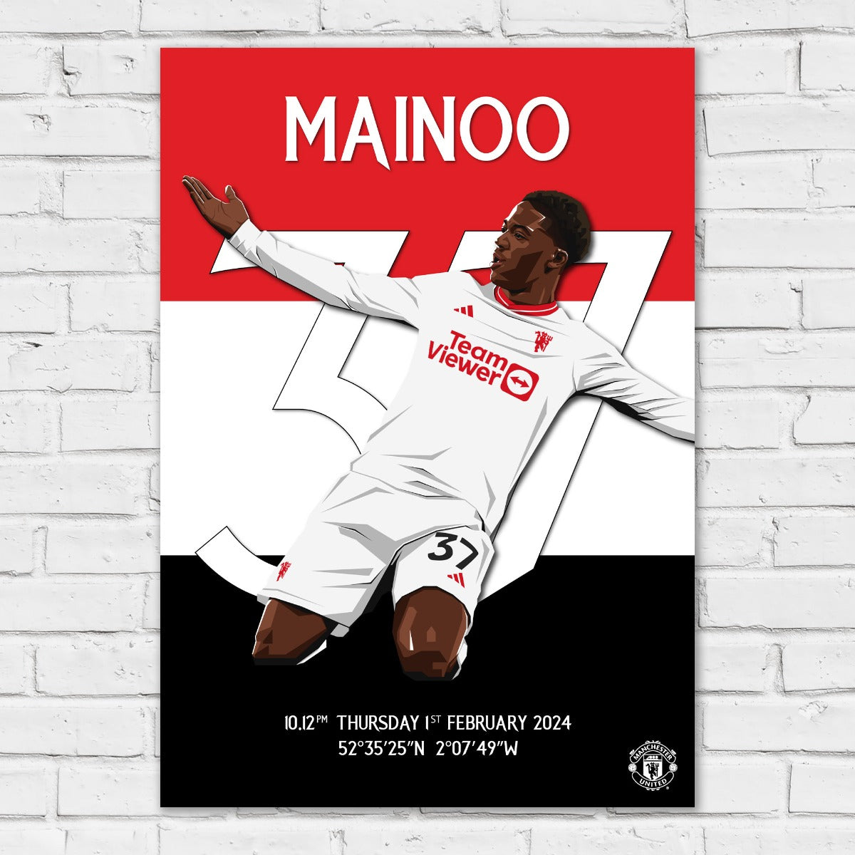 Manchester United FC Print - Mainoo 23/24 Wolves Goal Celebration Illustration Poster Football Wall Art