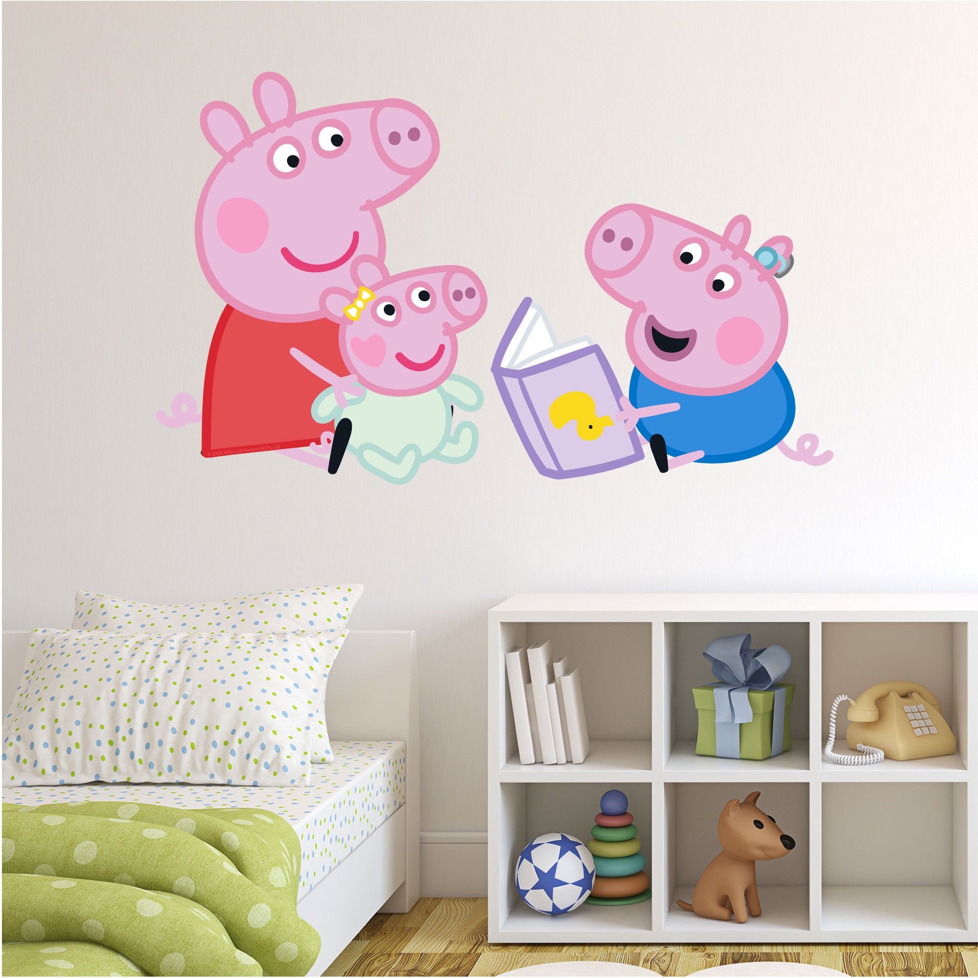 Peppa Pig Wall Sticker - Peppa And George Reading To Baby Evie