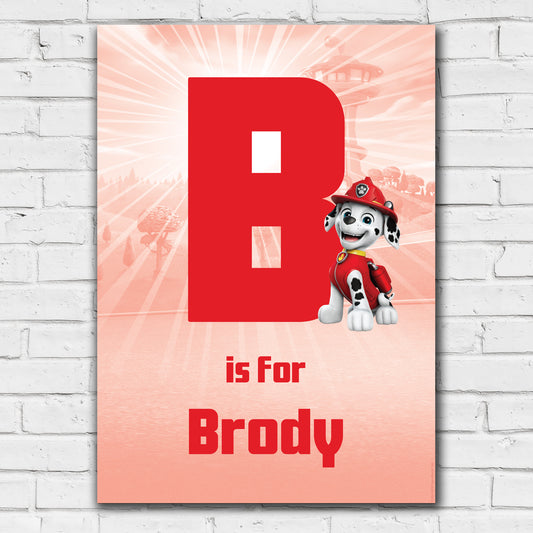 Paw Patrol Print - Marshall Letter and Name Personalised Poster Wall Art