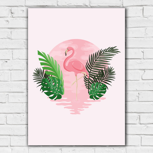 Pink Print - Pink Flamingo in Water Poster Wall Art