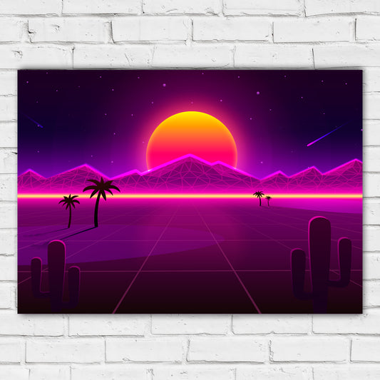 Pink Print - Retro Pink Mountain Sunset Poster Wall Art