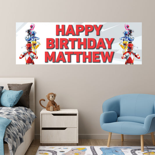 Power Rangers Birthday - Group White Personalised Banner Wall Sticker