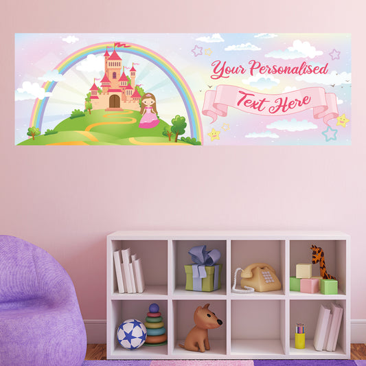 Princess Birthday – Rainbow Castle Personalised Banner Wall Sticker