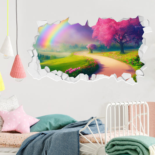 Rainbow Wall Sticker - Pink Rose Garden Rainbow Broken Wall