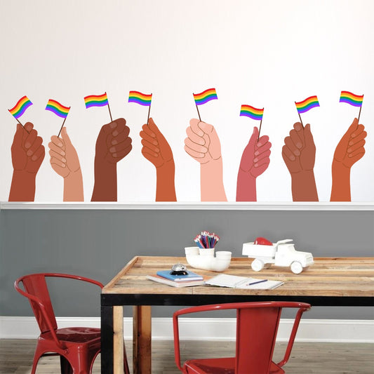 Rainbow Wall Sticker - Set of Hands Waving Rainbow Pride Flags