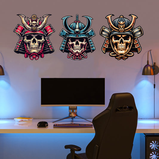 Samurai Wall Sticker - Samurai Warrior Skull Heads Set Decal Wall Art