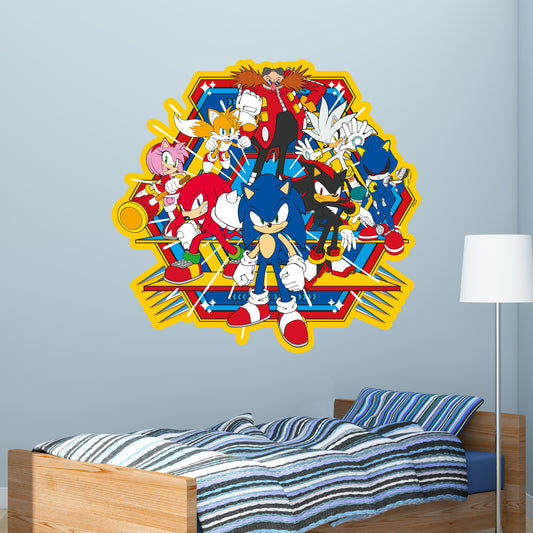 Sonic The Hedgehog Wall Sticker - Sonic Group Hexagon Wall Art