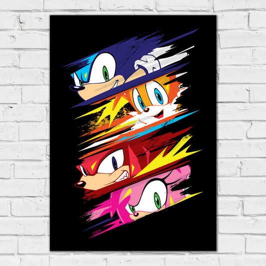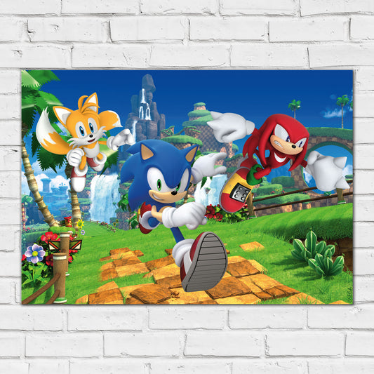 Sonic The Hedgehog Print - Sonic Tails Knuckles Running Poster Wall Art