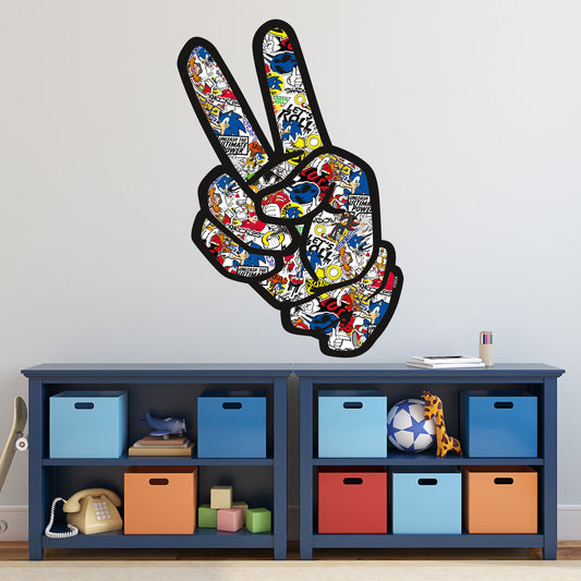 Sonic The Hedgehog Wall Sticker - Sonic Hand Peace Sign Graffiti Wall Art