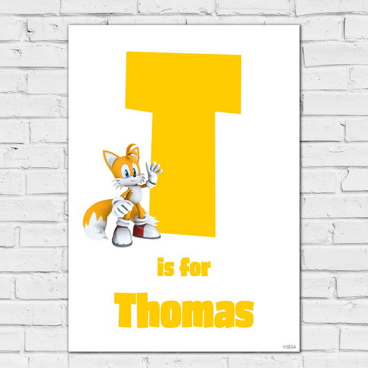 Sonic The Hedgehog Print - Tails Letter And Name Personalised Poster Wall Art