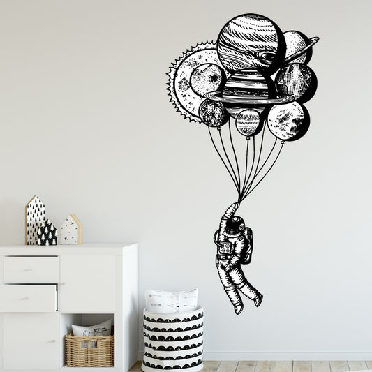 Space Wall Sticker - Astronaut Holding Planet Balloons