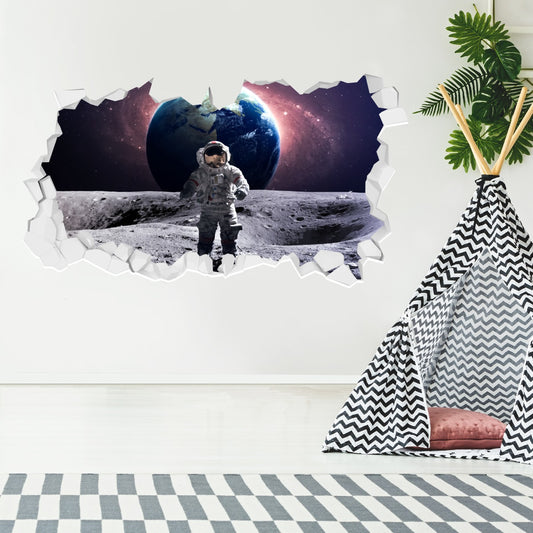 Space Wall Sticker - Astronaut on Moon with Earth Behind Broken Wall