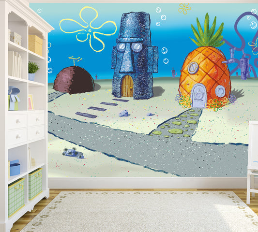 Spongebob Full Wall Mural - Bikini Bottom Houses Wall Art