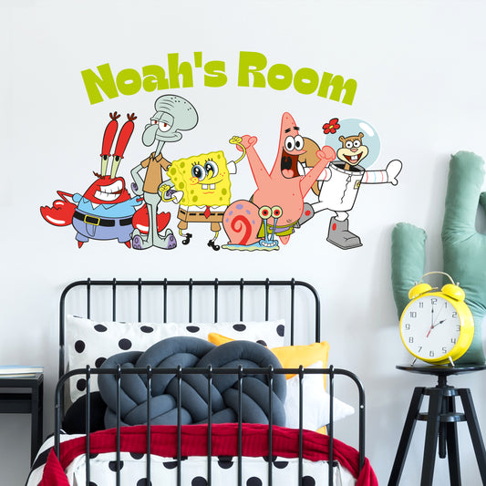 SpongeBob Wall Sticker - Group Smiling with Personalised Name Decal Wall Art