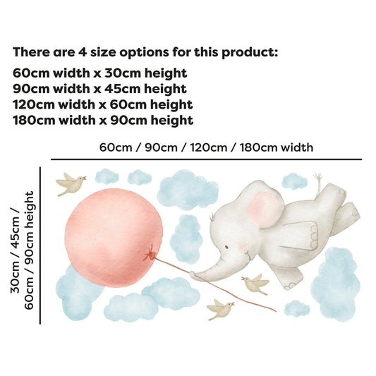 Watercolour Jungle Animal Wall Sticker - Elephant and Balloon Decal Wall Art