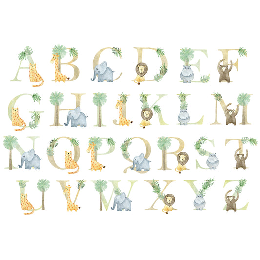 Watercolour Jungle Animal Wall Sticker - Animals on A-Z Letters Personalised Text Decal Wall Art