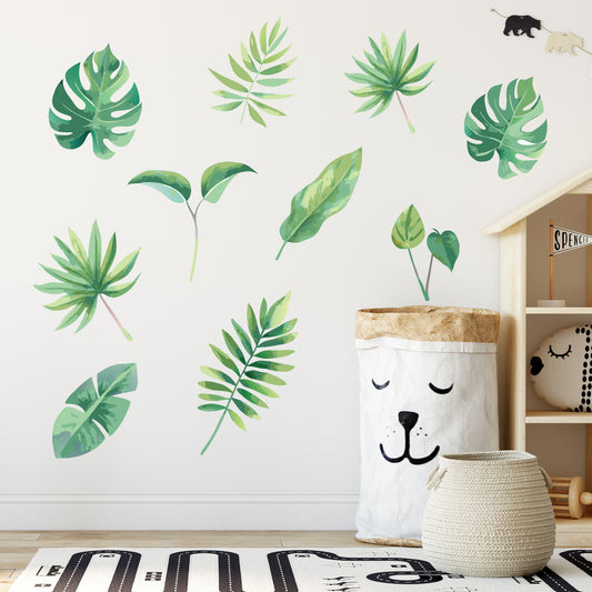 Watercolour Jungle Wall Sticker - Set of 10 Leaves Decal Wall Art