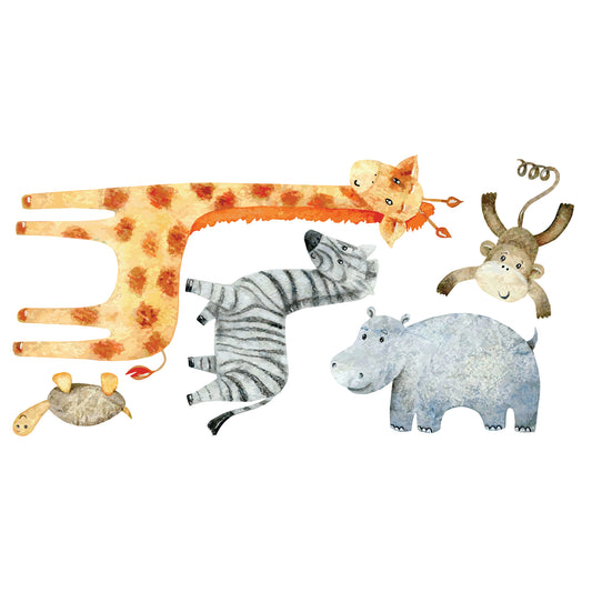 Watercolour Jungle Animal Wall Sticker - Six Animal Decal Set Wall Art