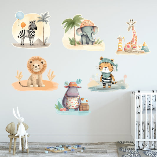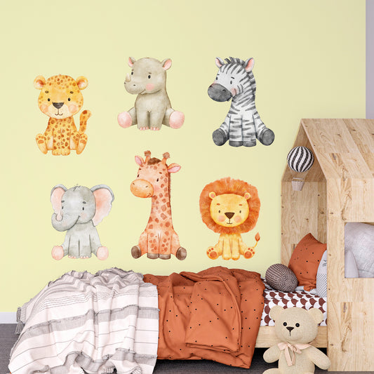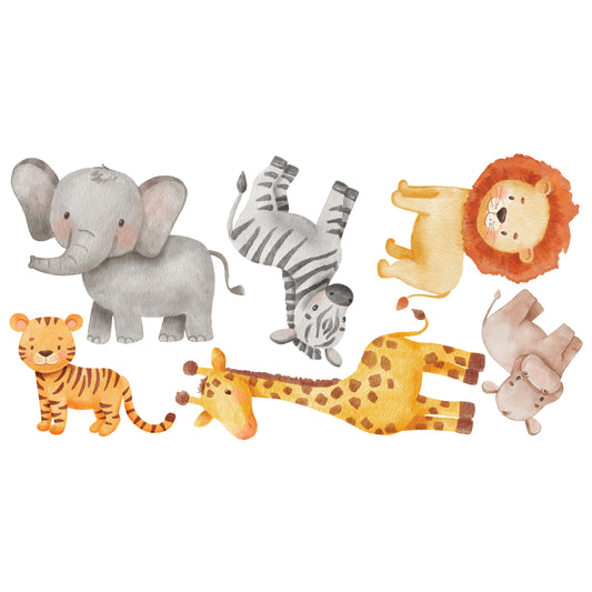 Watercolour Jungle Animal Wall Sticker - Set of 6 Jungle Animals Decal Wall Art