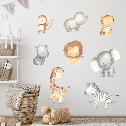 Watercolour Jungle Animal Wall Sticker - Set of 8 Jungle Animals Decal Wall Art