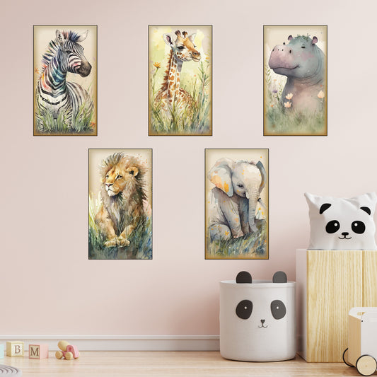 Watercolour Jungle Animal Wall Sticker - Five Animals Decal Set Wall Art