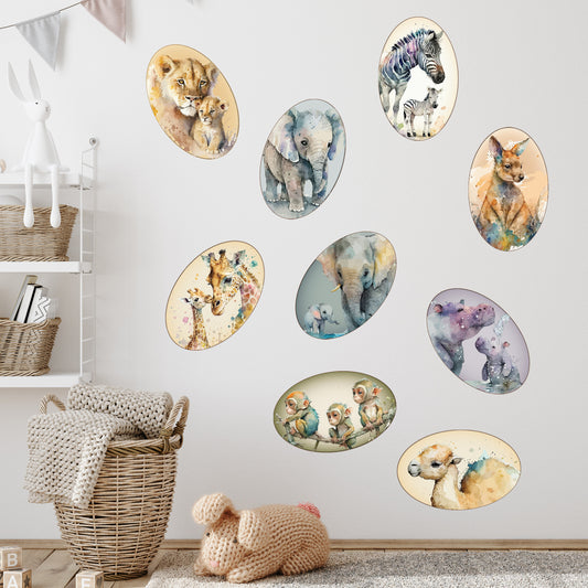 Watercolour Jungle Animal Wall Sticker - Nine Animal Decal Set Wall Art