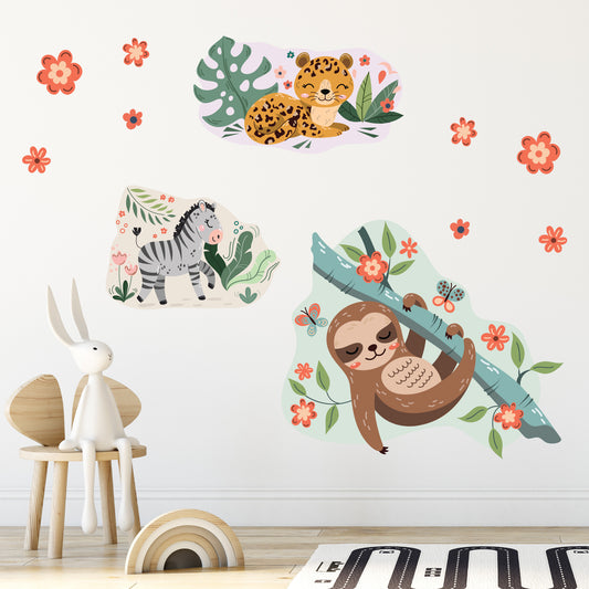 Watercolour Jungle Animal Wall Sticker - Three Animal Decal Set Wall Art
