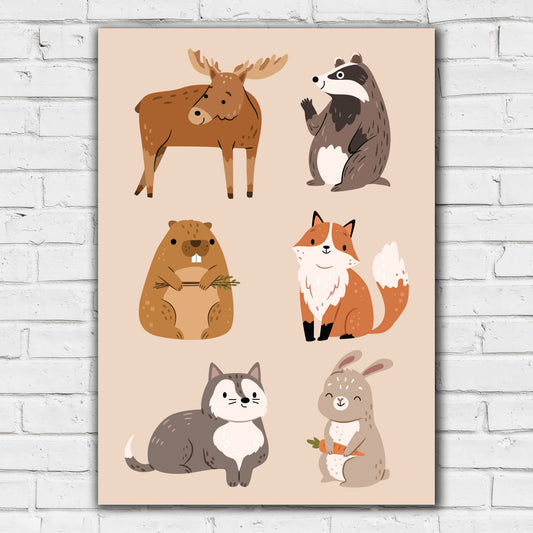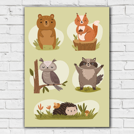 Woodland Print - 6 Forest Animals Poster Wall Art