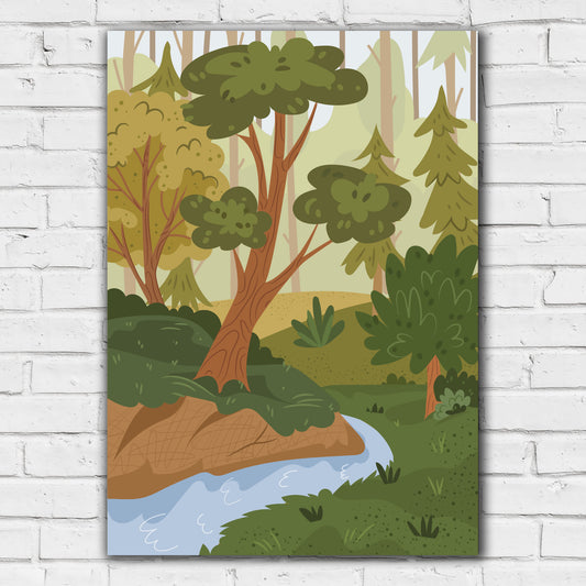 Woodland Print - Flowing Stream in the Woods Poster Wall Art