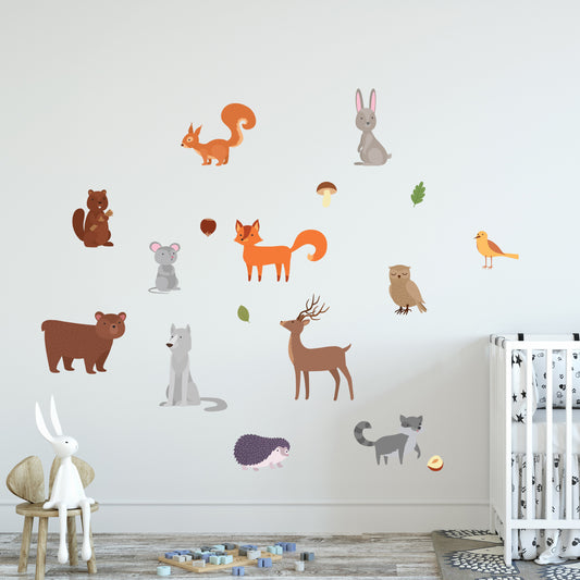 Woodland Wall Sticker - Group of 12 Forest Animals Decal Set Wall Art