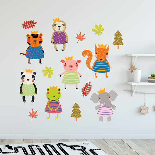 Animal Wall Sticker - Animals And Leaves Decal Set Wall Art