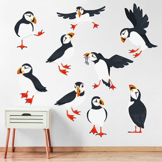 Animal Wall Sticker - Set Of Ten Puffins Decal Wall Art