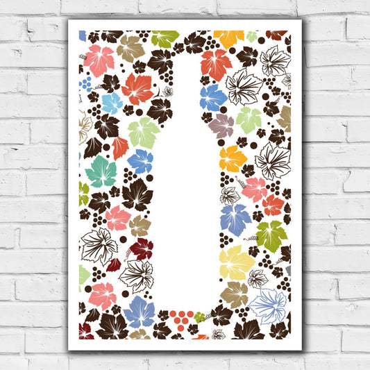 Alcohol Print - Wine Bottle in Leaf Pattern