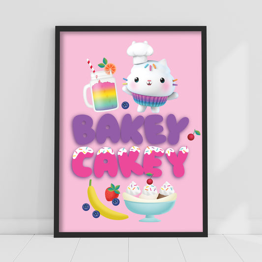 Gabby's Dollhouse Print - Cakey Cat Bakey Cakey Poster Kids Wall Art