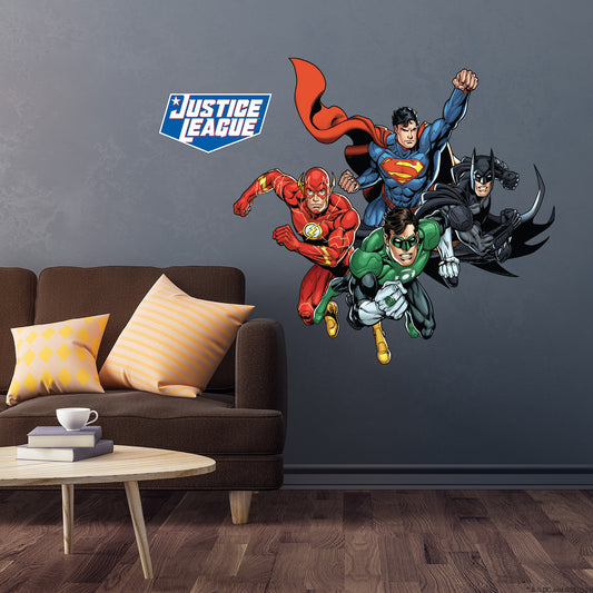 Justice League Wall Sticker - 4 Heroes Jumping Forward Wall Decal DC Superhero Art