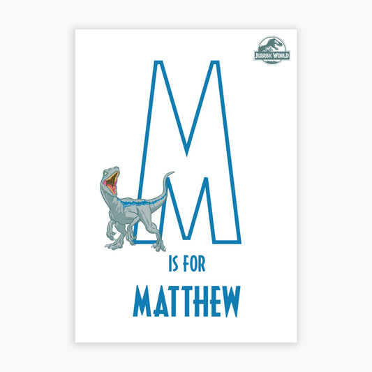 Jurassic World Print - Velociraptor with Personalised Letter and Name