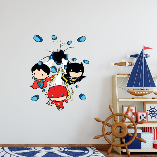 Justice League Wall Sticker - Cute Superman Batman and The Flash Bursting Through Wall Cartoon Wall Decal DC Superhero Art