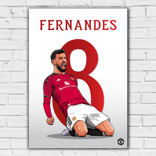Manchester United FC Print - Bruno Fernandes 25/26 Player Illustration Poster