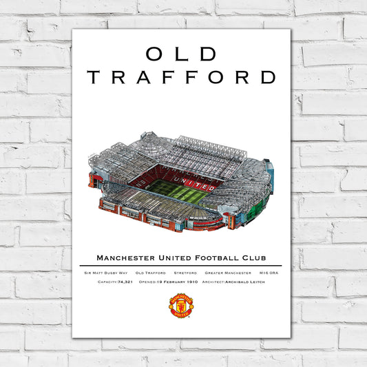 Manchester United FC Print - Marc Loboda Hand Drawn Old Trafford Stadium with Stats Poster