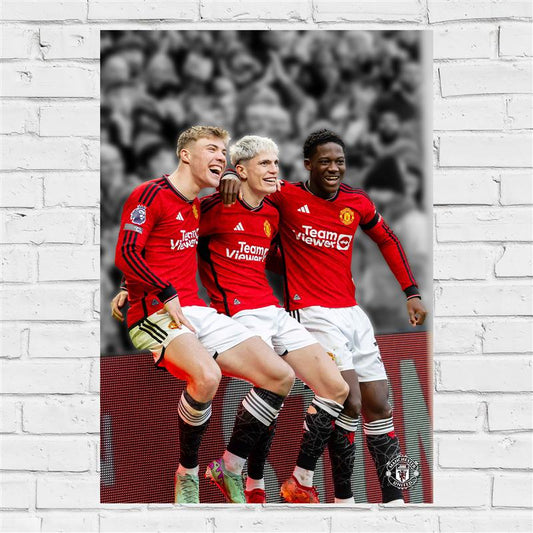 Manchester United FC Print - Trio Goal Celebration Poster Football Wall Art