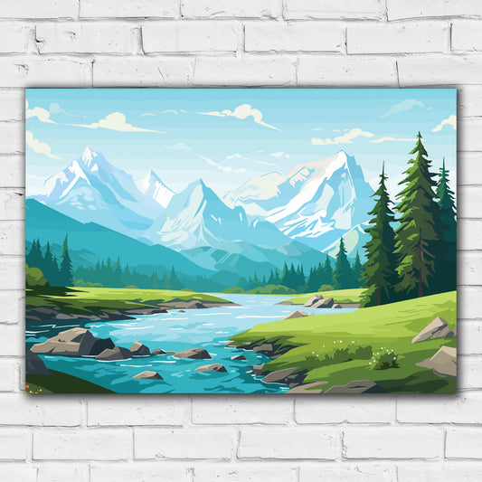 Mountain Wall Print - Peaks and River Poster Wall Art