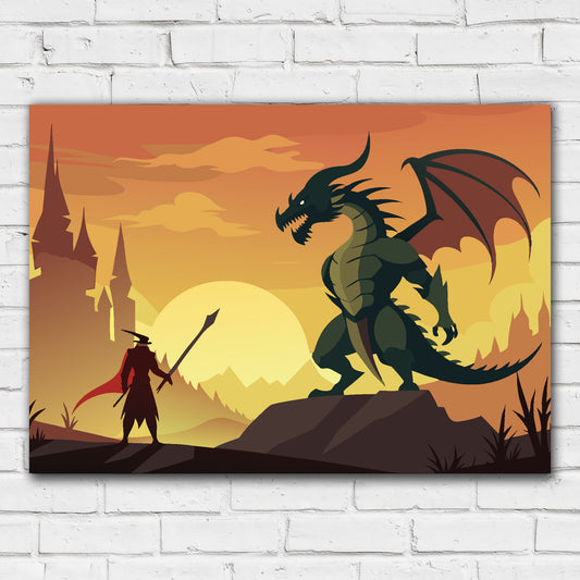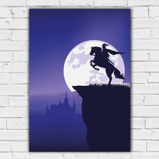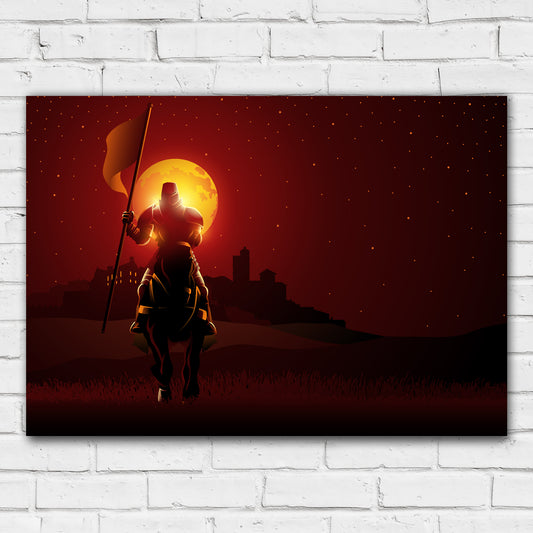 Medieval Wall Art Print - Knight On Horse At Night Fall Poster