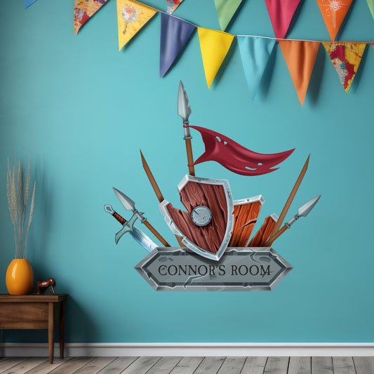 Medieval Wall Sticker - Shield And Spears Personalised Decal Wall Art