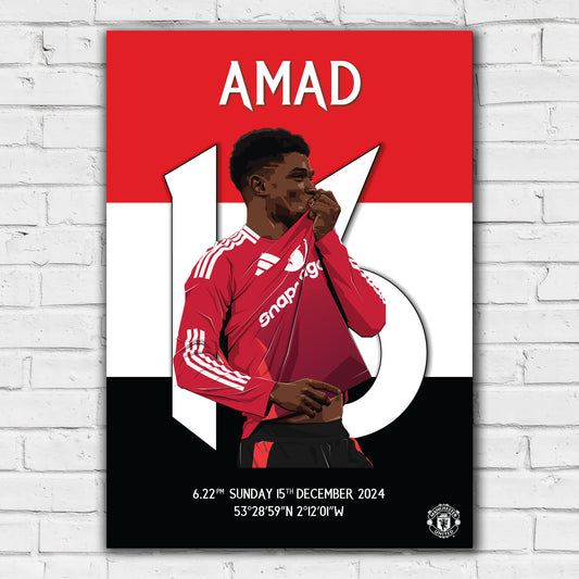 Manchester United FC Print - Amad Diallo Derby Goal Illustration Poster Football Wall Art