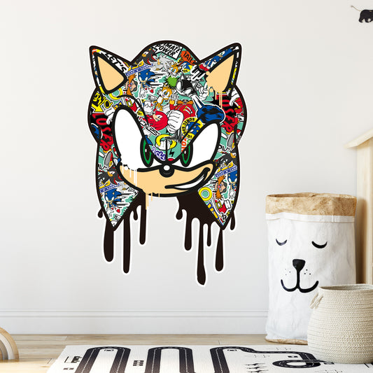 Sonic The Hedgehog Wall Sticker - Sonic Head Dripping Graffiti Wall Art