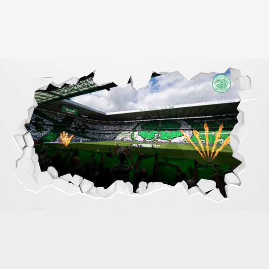Celtic FC Wall Sticker - Inside Stadium With Crowd and Flames Broken Wall