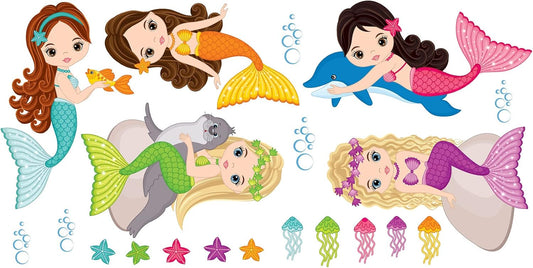 Colourful Mermaid Wall Sticker Set Art Decal Kids Bedroom Mural Ocean