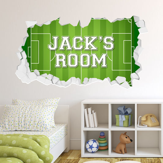 Football Wall Sticker - Football Pitch Personalised Name Broken Wall