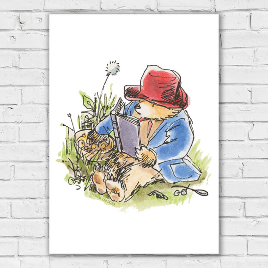 Paddington Bear Classic Print - Reading on Grass Wall Art