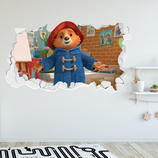 Paddington TV Wall Sticker - In Studio With Arms Open Broken Wall